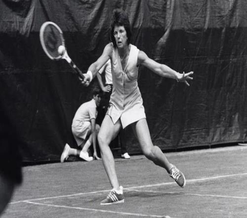 幸運的是,美國女子網(wǎng)球界有一位劃時代的先鋒——比利·簡·金。作為當(dāng)時網(wǎng)壇最頂尖的選手之一,她不甘被男性主導(dǎo)的體育體系定義價值。