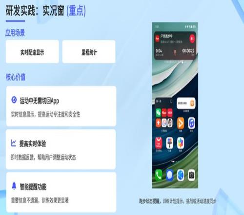 2)實(shí)況窗功能(重點(diǎn)實(shí)踐):作為鴻蒙對(duì)運(yùn)動(dòng)類應(yīng)用最具價(jià)值的延伸能力,實(shí)況窗可實(shí)時(shí)展示配速、里程、步數(shù)等跑步數(shù)據(jù),核心價(jià)值體現(xiàn)在:
