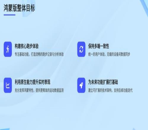 悅跑圈鴻蒙版的落地遵循明確的目標(biāo)與分步推進(jìn)策略,在研發(fā)過(guò)程中重點(diǎn)挖掘鴻蒙特性,實(shí)現(xiàn)了基礎(chǔ)功能穩(wěn)定與特色體驗(yàn)創(chuàng)新的雙重目標(biāo)。