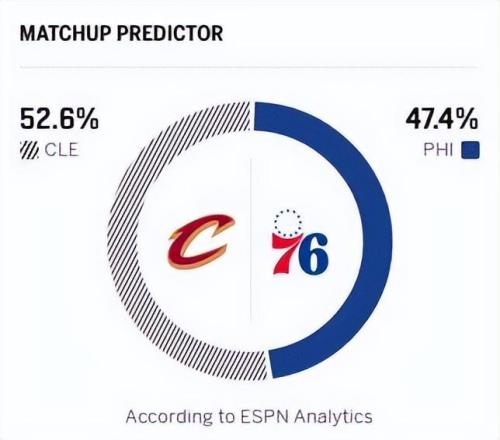 反觀76人,上一場主場大比分失利,全隊(duì)整體狀態(tài)低迷,攻防兩端均未打出應(yīng)有水準(zhǔn)。球隊(duì)核心恩比德雖拿下全隊(duì)最高的20分,但面對騎士雙塔的針對性防守,進(jìn)攻端明顯感到吃力;馬克西則陷入投籃低迷,16投僅5中,僅得到14分,遠(yuǎn)低于正常水準(zhǔn);喬治貢獻(xiàn)17分、埃奇庫姆拿下9 分,烏布雷與格萊姆斯坐鎮(zhèn)的替補(bǔ)席,整體表現(xiàn)平平,未能為球隊(duì)提供有效火力支援。76 人目前的防守水準(zhǔn)本就難言出色,若此番交手仍無法在進(jìn)攻端建立壓制,想要憑借防守限制住進(jìn)攻火力兇猛的騎士,難度可想而知。ESPN的賽前預(yù)測,騎士勝率為54.0%,而76人的勝率只有46.0%。