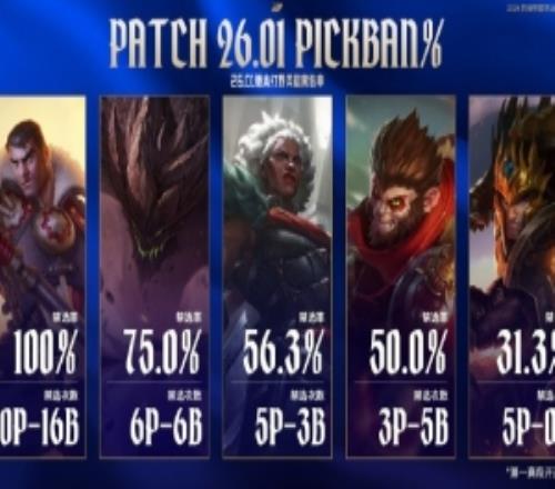 26.01版本第一賽段開(kāi)賽至今打野英雄禁選率一覽,其中杰斯禁選率達(dá)到100%;